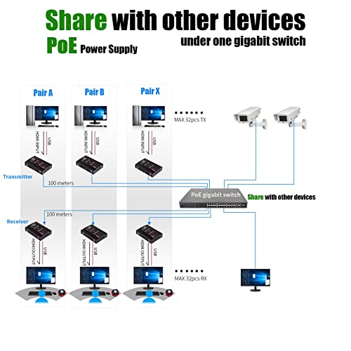 - ※【Power over Ethernet (PoE)】This 4k hdmi kvm usb extedner support PoE power supply (802.3AF) for easy construction and improve system robustness,recommend Gigabit PoE Switch power for the product,and also have video & audio broadcast.