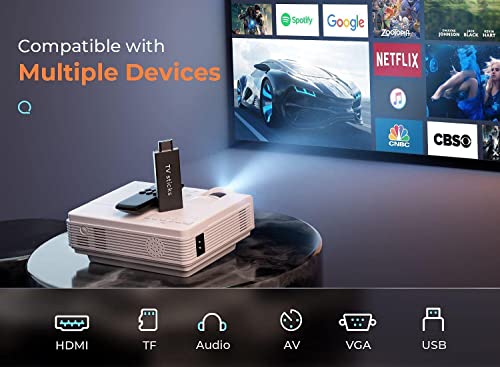 Upgraded 7500 Lumens Mini Projector, 1080P Supported, Portable Movie Outdoor Projector w/ 50,000 Hrs LED Lamp Life, Compatible with TV Stick, HDMI, VGA, TF and USB