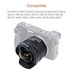 - COMPATIBLE: with APS-C SONY E-mount Cameras including NEX-3, NEX-5, NEX-C3, NEX-5N, NEX-7, NEX-F3, NEX-5R, NEX-6, NEX-3N, NEX-5T, a3000, a5000, a6000, a3500, a5100 a6300, a6500.