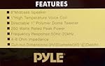 - SPECIFICATIONS: Famous Pyle build quality with a full 1-year warranty when purchased from an authorized Pyle reseller; 250 watt max; Impedance: 4.8 Ohm; Frequency Response: 50Hz 20K Hz;