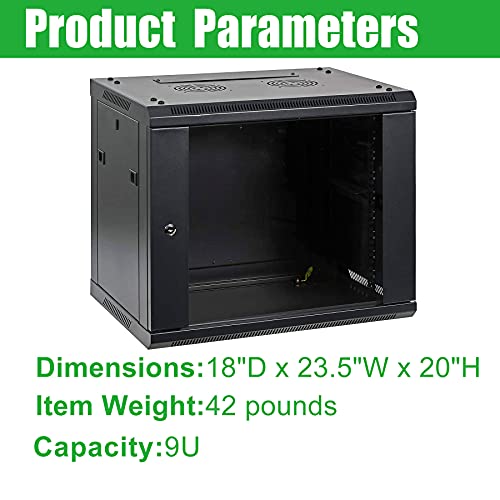 - ➔Contents: One 9U professional wall mount network server cabinet enclosure 19-Inch server network rack 16-Inches deep black.