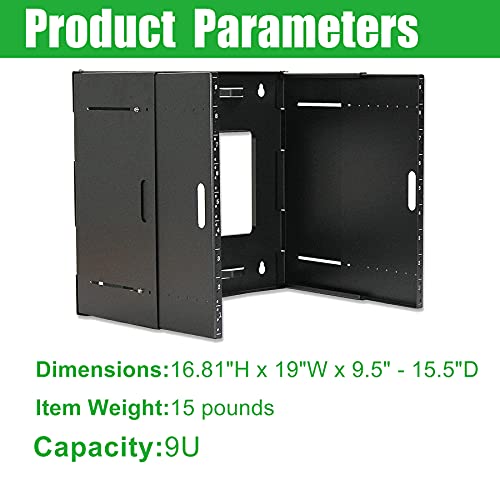 - ➔Contents: One 9U wall mount bracket extendable network equipment rack threaded standard 19 Inch (40 pound weight capacity).
