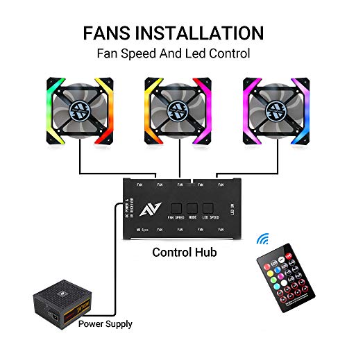 - 【Synchronizable RGB For Your Build】You can control the lighting effects with your 5V SYNC addressable RGB motherboard and our control hub or remote control. The pc fans support SYNC motherboard software including Aura SYNC and Gigabyte Fusion, MSI Mystic Light Sync, etc.