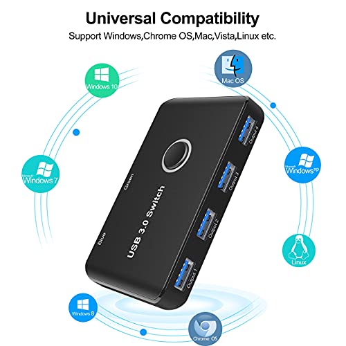 - 【Great Compatibility, Driver-free】This usb 3.0 switch works with great compatibility, driver-free for Windows 10/8/8.1/7/Vista/XP and Mac OS, Linux, and Chrome OS, simply plug and play.