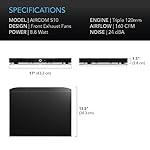 - Dimensions: 17 x 13.5 x 1.5 in. | Exhaust: Front | Airflow: 160 CFM | Noise: 24 dBA
