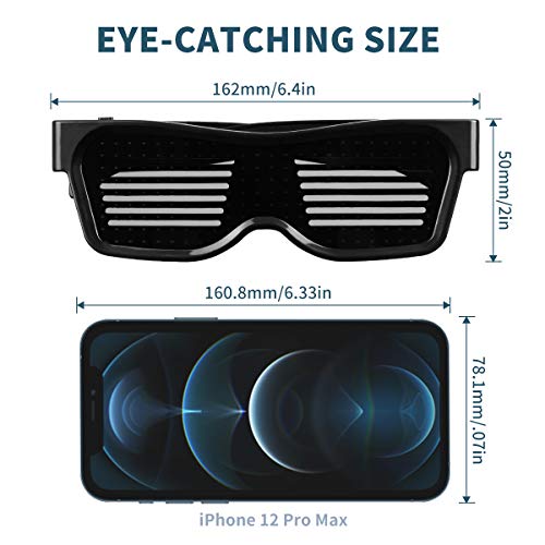 ACALEPH Customizable LED Light Up Glasses with Bluetooth for Parties,Festivals,Flashing Display DIY Text Messages,Animation,Control by APP, Gift for Women,Men(Colour Light)