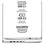 - 1 - USB 3.1 (Type-C) Gen 1 port (up to 5 Gbps), 2 - USB 3.1 Gen 1 Port (one with Power-off Charging), 1 - USB 2.0 Port & 1 - HDMI Port with HDCP Support