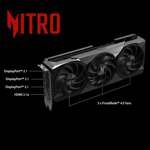Acer Nitro AMD Radeon RX 9070 XT Overclocking Graphics Card with 16GB GDDR6 | PCI Express 5.0 | OC Boost Clock 3.1 GHz | 3 FrostBlade 4.0 Fans | TPD 340W | 1 x HDMI 2.1a & 3 x DisplayPort 2.1