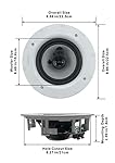 - FRAMELESS DESIGN - Paintable edge-to-edge grills magnetically attach over the frames giving a frameless appearance, pressure lock mounting system clamps tight to drywall, fits round speaker hole size of 8.27" with a mounting depth of 2.99", overall size of 8.86" with spring loaded raw wire connections
