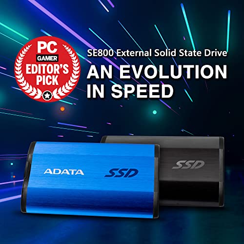 ADATA SE800 1TB IP68 Rugged - Up to 1000 MB/s- SuperSpeed USB 3.2 Gen 2 USB-C External Portable SSD Black (ASE800-1TU32G2-CBK)
