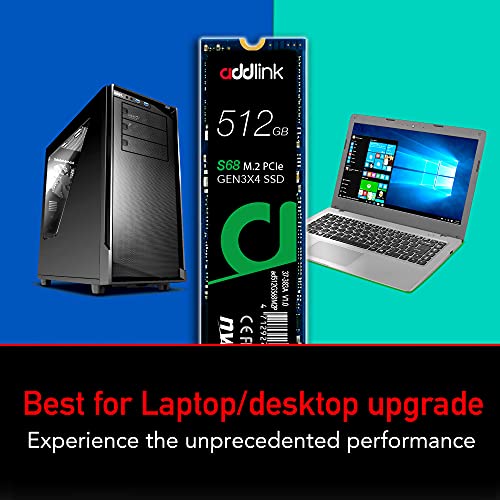 addlink S68 512GB SSD 2100 MB/s Maximum Read Speed Internal Solid State Hard Drive - M.2 2280 PCIe 3.0 NVMe Gen3X4 TLC 3D NAND SSD (ad512GBS68M2P)…