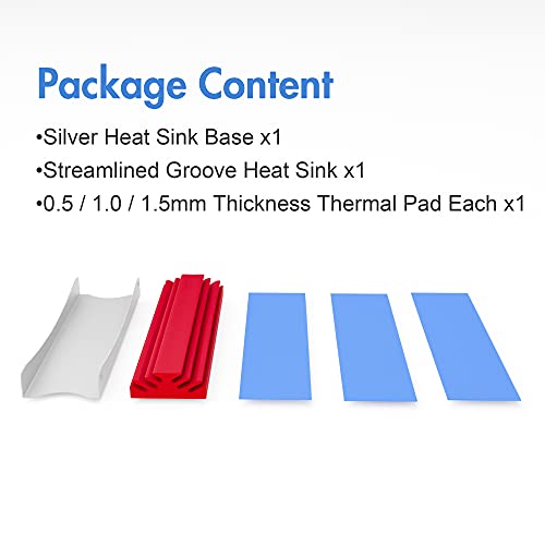 - [ High Quality Material ] Package comes with 237 W/mk Aluminum Alloy Heatsink with corrosion resistance, hardness, wear resistance and 6.0 W/mk Silicone Thermal Pads x2