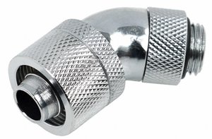 Alphacool HF G1/4" to 10mm ID, 16mm OD Compression Fitting for Soft Tubing, 45 Degree Rotary, Chrome, 4-Pack