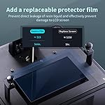 - 6.23" LCD Screen: ANYCUBIC Photon Mono 4K printer is equipped with a 6.23 inches screen with a maximum print volume of 6.5x5.2x3.1 inches. The monochrome screen lasts 4X longer than the RGB LCD screen, and a replaceable scratch-resistant film (and an additional protective film) is installed on the LCD screen to effectively protect the screen.