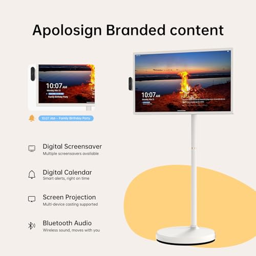 - [Personalized Calendar Widget & Dynamic Screensavers] The ApoloSign Gen 2 stands out from typical portable smart TVs with its interactive desktop calendar widget and an array of stylish digital screensavers. Perfect for home use, it simplifies task management, reminders, and event tracking. Enjoy seamless synchronization with Google Calendar, Outlook, Google Tasks, and other calendar apps (via Google Calendar integration), ensuring your schedule stays organized and within reach at all times.