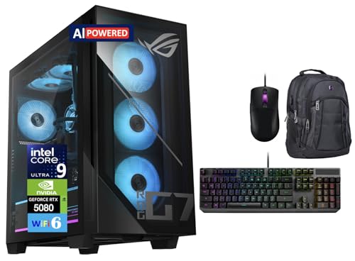 ASUS ROG G700 AI PC Desktop PC (Intel Ultra 9-285K, GeForce RTX 5080 16GB GDDR7, 64GB DDR5, 8TB PCIe SSD, RGB Fans, 240mm AIO, 850W PSU, WiFi 6, Bluetooth 5.2, Win 11 Pro) w/Premium Backpack