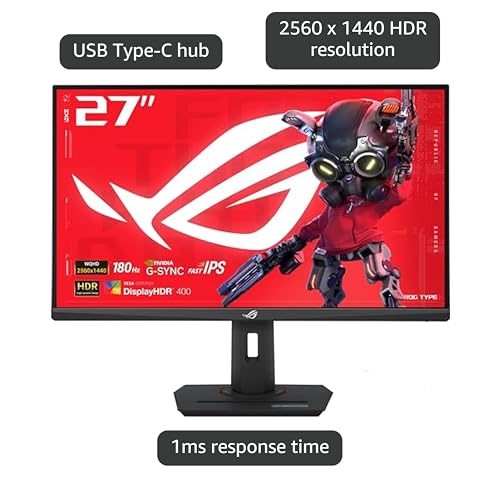 ASUS ROG Strix 27” QHD (2560x1440) HDR400 USB-C Gaming Monitor (XG27ACS), 180Hz,1ms, Fast IPS, 133% sRGB, Extreme Low Motion Blur Sync, G-Sync Compatible, DisplayWidget, Tripod Socket, 3 Year Warranty