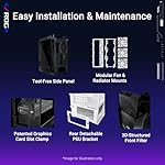 - Tidy PC building: Effortless cable management is enabled by a multifunction cover with graphics card holders, a PSU shroud, a cable cover, and rear cable clips