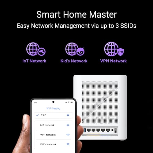 - Easily establish up to three SSIDs with Smart Home Master for simple IoT device setup and management, instant VPN connections, and convenient parental controls.
