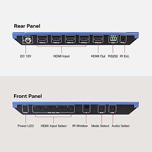 - 𝐌𝐮𝐥𝐭𝐢𝐩𝐥𝐞 𝐂𝐨𝐧𝐭𝐫𝐨𝐥 𝐖𝐚𝐲𝐬: AV Access 4KMV41 multi-viewer supports 3 control ways, it supports IR remote ( IR extender cable is provided), RS232 for API control and button switch. The audio is selectable, or you can choose to mute.