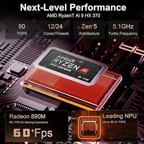 - 【Al Mini PC Boosts Work Efficiency】Beelink Ryzen 9 PC , AMD Radeon 890M 2900MHz iGPU accelerate Al drawing, resulting in faster image generation and more intricate details.12 cores and 24 threads ,combined with 80 Al TOPS and the new generation XDNA 2 NPU, will generate large-scale images in no time, 5.1GHz CPU clock, memory overclocking and powerful Al acceleration, video editing becomes smoother, NPU with 50 TOPS and ray tracing support greatly enhance 3D rendering and design experiences