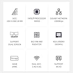 - 【Small but powerful】Thin and light mini computer with silent fan design, efficient heat dissipation, multi-port to meet your daily work needs, 1XDC Jack, 4xUSB3.0, 1XAudio Jack, 2xHDMI, 1X RJ45 1000M.