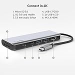 - Ports include 4K HDMI 1.4, USB-C PD 3.0, 2x USB-A 3.0 BC1.2, SD 3.0 card reader, Micro SD 3.0, 3.5 mm audio in/out