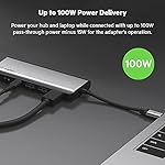 - Pass-through Power Delivery charging up to 100W minus 15W for the adapter’s operation