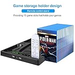 PS5 Stand with Suction Cooling Fan for PlayStation 5 Digital Edition & Ultra HD Console, PS5 Controller Charging Station and Headset Holder, 15 Game Slots