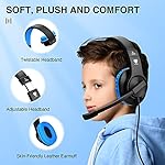 - 【Comfortable and Light Weight】 The headset used skin-friendly leather material with Self-adjusting head beam and head cushion design ensures perfect fit with different head sizes (suitable for both adults and kids) and super soft Over-ear pads that is more comfortable for long time gaming.