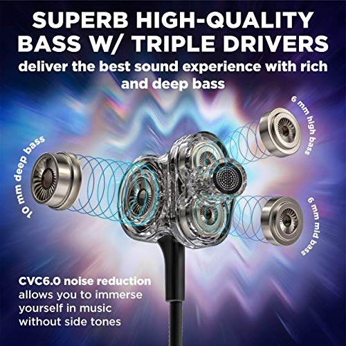 TBI Pro i6 Bluetooth Headphones with 28 Hours Per Charge - Triple Drivers Earbuds High-End 6D Sound Effect, IPX7 Waterproof Sport in-Ear Wireless Earphones for Running, Workouts, Exercise, Gym