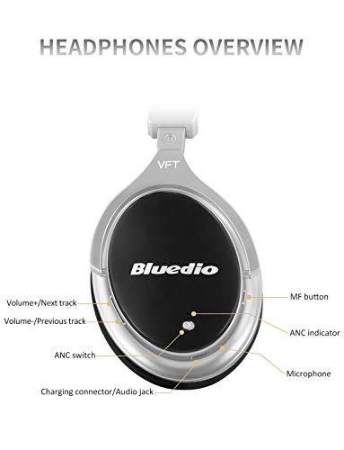 Bluetooth Headphones Active Noise Cancelling, Bluedio F2 ANC Over Ear Wireless Headphones 180° Rotation,Wired and Wireless Headphones for Cell Phone/TV/PC - Black