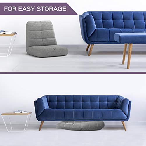 - ✔ DESIGN: The Easy Lounge floor chair with back support is available in two colors: blue and grey. The seat of the floor cushion has the following dimensions: (width x depth x thickness) 25’’ x 17’’ x 6.7’’. The backrest has a height of 19.2’’ when positioned upright. Depending on the angle, the floor cushion’s length is approximately 25-43.70’’. The floor chair weighs 12.34 lb and supports 264lbs. All materials are non-toxic.