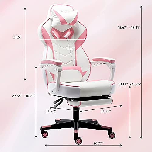 Bonzy Home Gaming Chair,Computer Office Chair Ergonomic PU Leather Chair with Footrest,Recliner Computer Chair with Headrest & Lumbar,Video Game Chairs with 360°-Swivel Seat for Gaming or Office,Pink