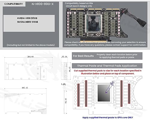 - SIMPLE COMPATIBILITY/INSTALL: Full coverage GPU block with straightforward installation allowing you to get up and running quickly. The block is designed to be compatible with NVIDIA H100 80GB and NVIDIA H800 80GB. Use with other video cards is not recommended.