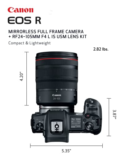 Canon EOS R RF24-105mm F4 L IS USM Lens Kit, Vlogging and Content Creator Camera 4K UHD, Digital Single-Lens Non-Reflex AF/AE Camera, 0.24 Magnification, Mirrorless, Full-Frame