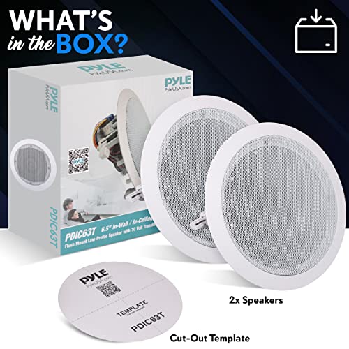 Select Variant: Ceiling and Wall Mount Speaker - 6.5” 2-Way 70V Audio Stereo Sound Subwoofer Sound with Dome Tweeter, 500 Watts, in-Wall & in-Ceiling Flush Design for Home Surround System - Pyle PDIC63T (White)