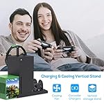 Charging Stand with Cooling Fan for Xbox Series X Console and Controller,Vertical Dual Charger Station Dock Accessories with 2 x 1400mAh Rechargeable Battery and Cover (Black)