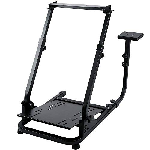 - 【FREE ADJUSTABLE】The Steering Wheel stand has a wide range of height adjustment and angle adjustment. You can finely tune your wheel and pedal to any ergonomic position you need.