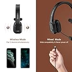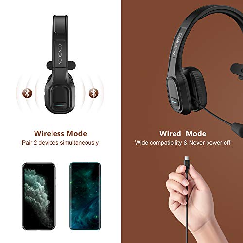 COMEXION Trucker Bluetooth Headset V5.0, Wireless Headset with Noise Canceling&Mute Microphone for Cell Phones, On Ear Bluetooth Headphone with Wireless&Wired Mode for Trucker, Home Office, Skype