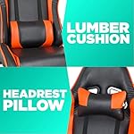 COMFTY Gaming Chair with Fold-Away Footrest, Computer Chair & Support Pillows and 2D T-Armrests Deluxe Leather Reclining Gaming Chair with Footrest, Black/Orange