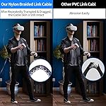 - Anti-Abrasion - In order to strengthen the toughness, abrasion resistance and anti-pull ability of this link cable for oculus quest 2, the polyester fiber twisted yarn is twisted into thin strands and then finely knitted. The tight connection between the yarns makes the cable surface more practical, abrasion-resistant and anti-pilling.