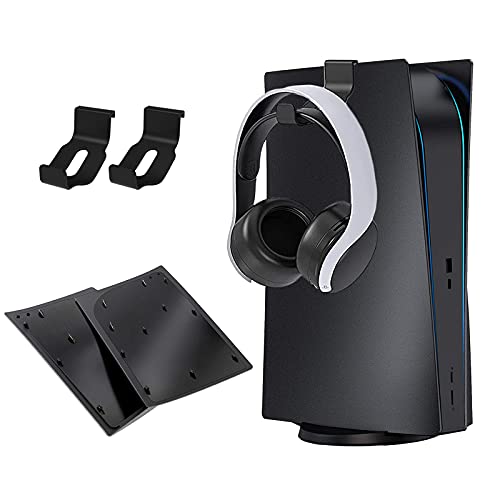 - Package Details: 1 set faceplates for PS5 console and 2 pcs headphone hook. We hope the black console faceplate would provide a new visual experience for you and a different style for your Playstation 5 console, as well as the headphone holder would keep your desktop clean and tidy.