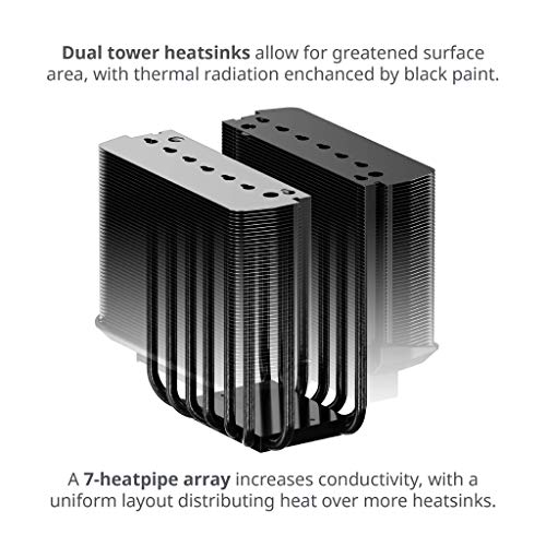 - Dual tower heatsink a combination of 2 sets of heatsink covers more surface area and dissipates heat more efficiently; The Jet black paint enhances cooling performance