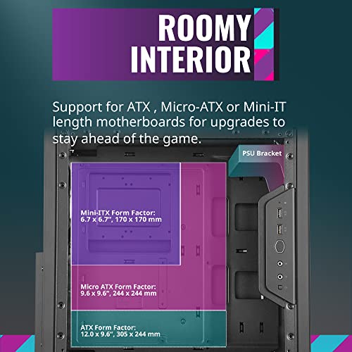 - Minimized dimensions for standard ATX: The Master Box Q500L supports standard ATX motherboards and plus, with a body depth and Height of only 386 x 381 millimeter