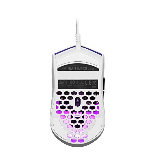 Cooler Master MM711 60G Glossy White Gaming Mouse with Lightweight Honeycomb Shell, Ultraweave Cable, 16000 DPI Optical Sensor and RGB Accents