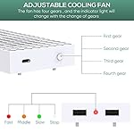- Adjustable Speed: Dual high-speed(4000rpms) cooling fans can be adjusted in 3 levels by a switch button for better heat dissipation efficiency and environmental-friendly. 3 led colors indicate different fan speeds, it is convenient to set the fan speed to your want, Red - Fast speed, Orange - medium speed, Green - low speed, and no light means stop. Smart Memory functions will record your fan speed set, you don't need to set it again for the next use.
