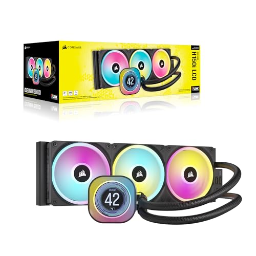 CORSAIR iCUE Link H150i LCD Liquid CPU Cooler - 360mm AIO - QX120 RGB Fans - 2.1” IPS LCD Screen - Fits Intel LGA 1700, AMD AM5 - iCUE Link System Hub Included - Black