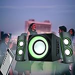 - COLORFUL ROOM FILLING SOUND: Match the color of your gear, your room, or your mood with this powerful and dynamic 2.1 sound system. Color selectable LED drivers deliver your music with flair. Choose green, blue, red, purple, yellow, light blue, white, continuous color changing, or keep the lights off.