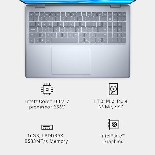Select Variant: Dell 16 Plus Laptop DB16250-16.0-inch 16:10 2.5K (2560x1600) Display, Intel Core Ultra 7 256V, 16GB LPDDR5X Memory, 1TB SSD, Intel Arc Graphics, Backlit Copilot Key Keyboard - Previously Inspiron